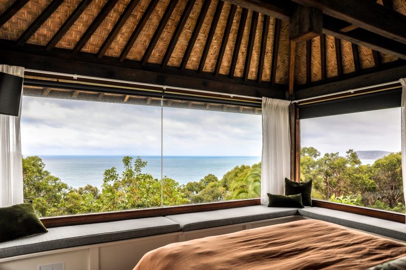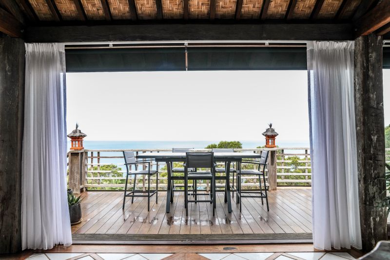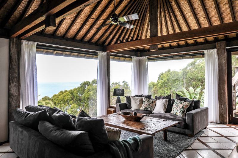 A spectacular coastal five star hideaway on a grand scale with all the features of your very own private resort on an acre surrounded on all sides by national park. The super natural bush environment is the canvas that ignited the imagination of the design. Recycled timber from the wharfs of Brisbane, imported materials and 15th century timber doors combine brilliantly to produce this "one off" masterpiece.