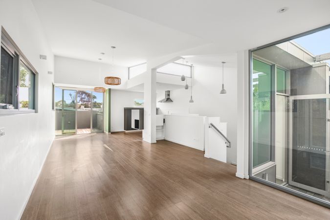 Upstairs, is beautifully light filled, on this level you will find, main kitchen that opens out into the main living space, flowing out to two private balconies