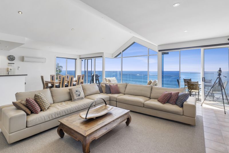 With spellbinding views and positioned on the low side of one of north Lorne's favourite streets, this considerable home should capture your attention. Situated on a 523 sqm fully contained allotment, the substantial home comprises 4 bedrooms, 3 bathrooms and multiple living zones. With an expansive open plan kitchen, dining, lounge area that gives the sense of being suspended dramatically over north Lorne's rocky beach and Louttit Bay. You are immediately immersed in the aura that is provided by arguably one of the best views in Lorne. The natural light and high ceilings provide a year-round ambience. A fantastic family orientated home with a view that has to be seen to be believed!