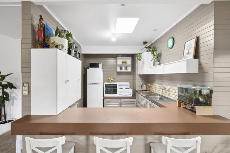 The fully fenced, grassy backyard provides an ideal play area for children, complete with a delightful cubby house and a garden shed for convenient storage of golf essentials. Add to this, generous off-street parking for your boat or caravan. Set on a low maintenance 585sqm (approx.) allotment, this original beach house presents an exceptional opportunity to enter the coastal market in a highly desirable position for families and golf lovers.