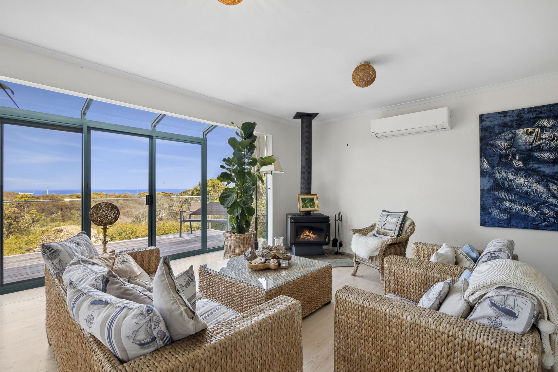 Surrounded by the Moggs Creek Flora and Fauna Reserve on almost half an acre, it offers a level of privacy hard to achieve so close to the sea. Only a 300-metre flat stroll to the beach with nothing to interrupt the views, which cannot be built out, there is only soft on the eye greenery between you and the passing ships and whales on the horizon.