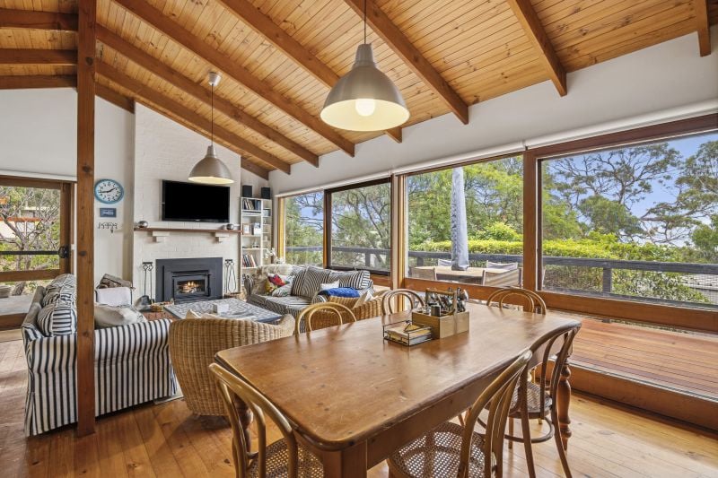 Features include a one level floor plan, timber flooring throughout, wood fire, split system heating/cooling, timber bench tops in the kitchen, a relatively gently sloping block to be easily maintained, undercover car parking and substantial glazing to capture light. Ocean and bush views are enjoyed throughout the home.