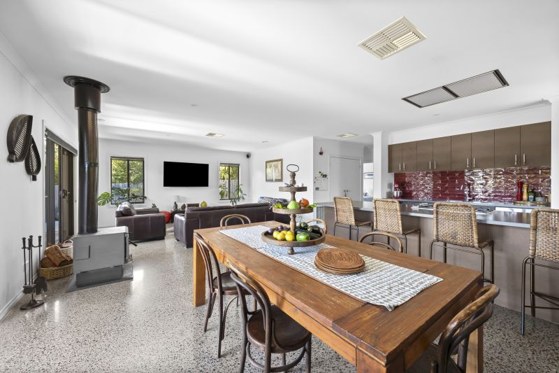 Step inside to discover the charm of polished concrete flooring and the inviting warmth of a wood heater. Stay comfortable year-round with the convenience of gas ducted heating and evaporative cooling, ensuring a cozy atmosphere in every season.