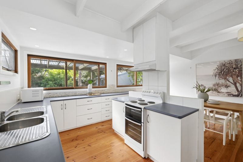 Set on a fully fenced, low-maintenance 671sqm (approx.) allotment, the home also features a separate outdoor studio-ideal for creative pursuits, home gym or yoga studio, and an outdoor shower, perfect for rinsing off after a day at the beach.