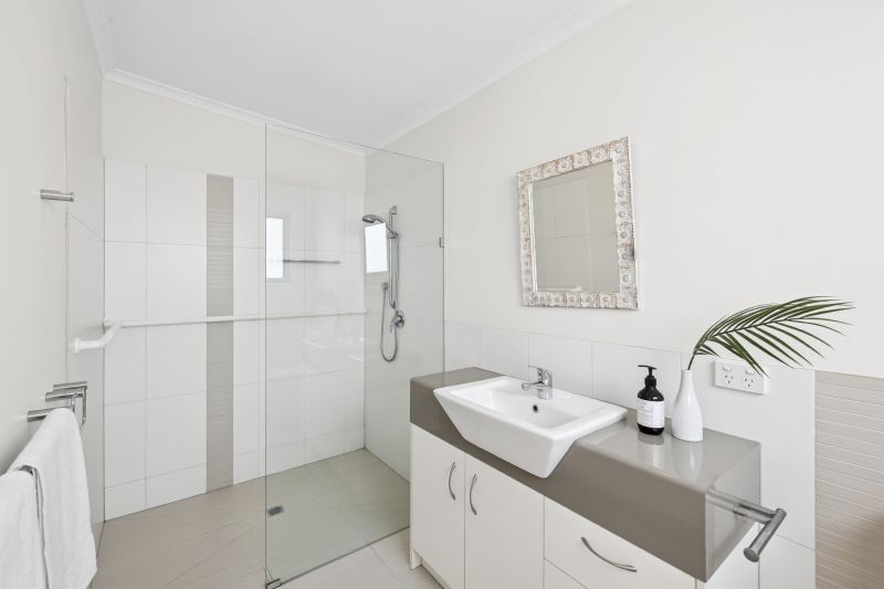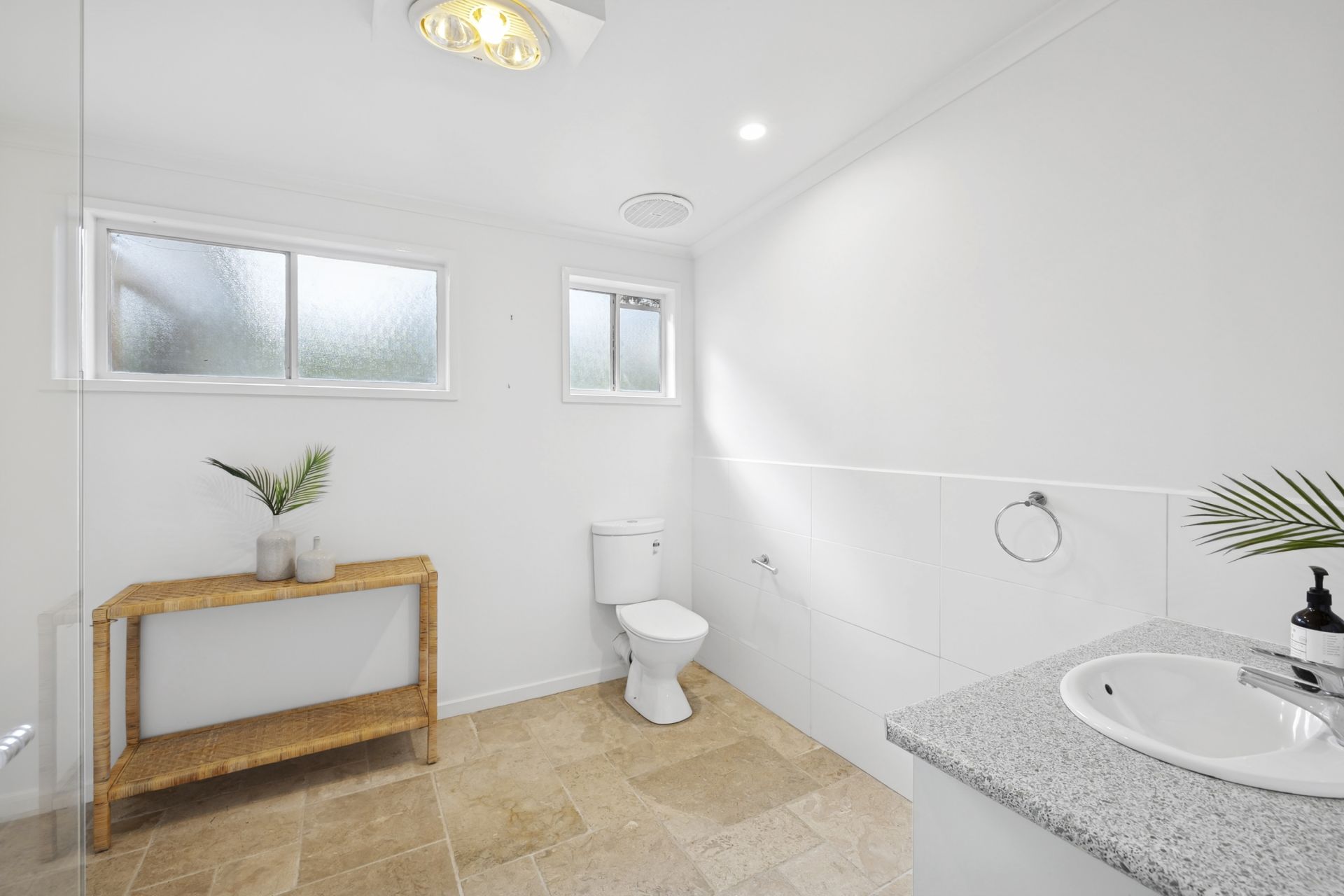 Stepping inside, you'll immediately feel the calm, coastal vibe that flows throughout the home. The thoughtful open and flowing floorplan includes three generously sized bedrooms, a central family bathroom, and a sense of space and ease throughout. The oversized master bedroom is a true retreat, complete with an ensuite and sliding doors that open directly to the outdoor deck, seamlessly blending indoor comfort with tranquil outdoor living. Light-filled interiors, wooden floorboards, high ceilings, and a spacious laundry all contribute to the home's effortless functionality and relaxed charm.
