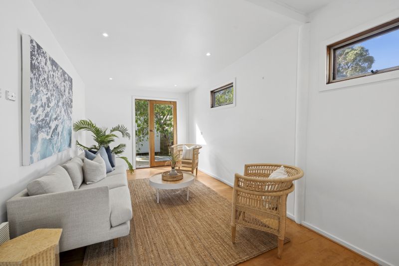 Tucked away in a peaceful court setting and surrounded by mature gardens alive with native birdlife and wildlife, this charming Anglesea residence offers a rare blend of character, comfort, and flexibility. A true coastal sanctuary, the home reveals a surprisingly spacious and functional layout designed to accommodate relaxed family living, working from home, or hosting guests with ease.