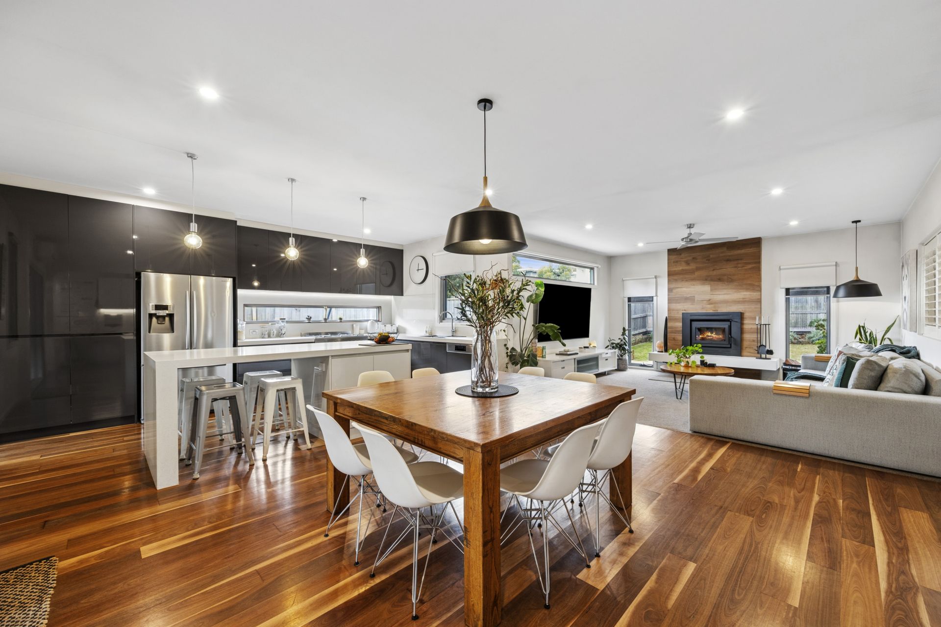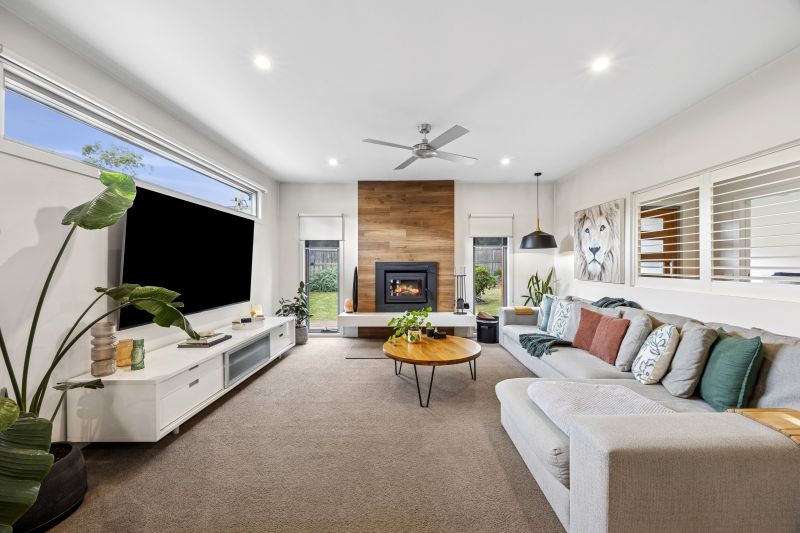 Polished timber floors enhance the home's warmth and coastal character, while soaring ceilings provide a wonderful sense of light and space. A wood heater in the main living room adds charm during cooler months, while split-system heating and cooling ensures year-round comfort.