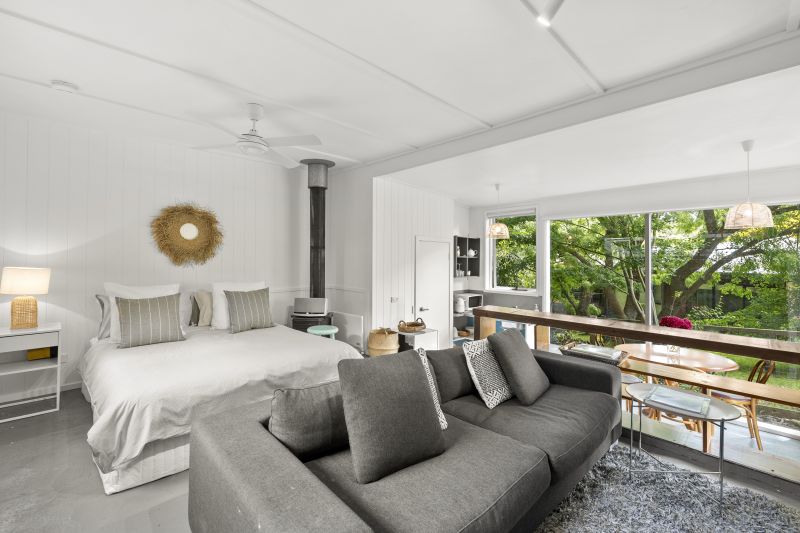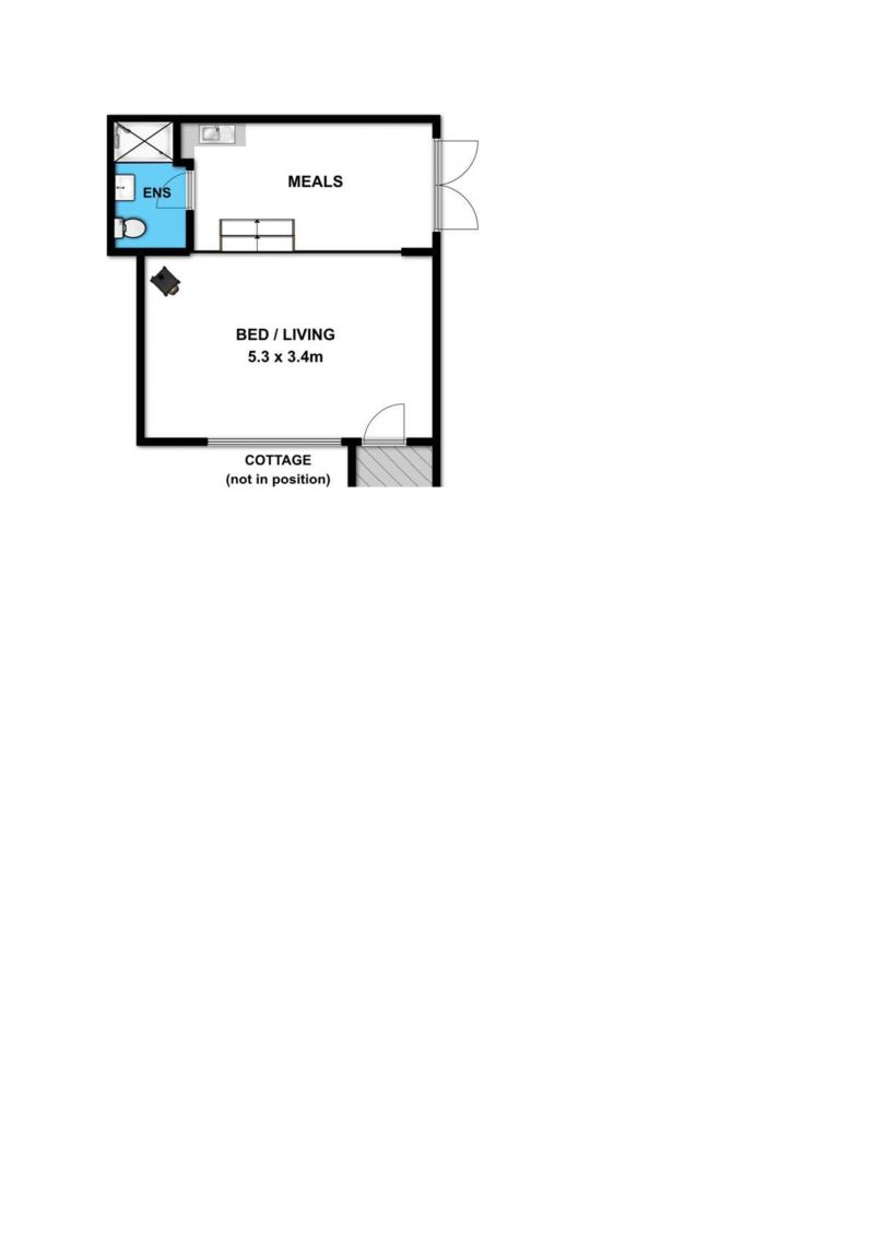 The studio offers Open plan sitting/ bedroom on the upper level, stepping down into the kitchenette/ meals area, and separate bathroom.