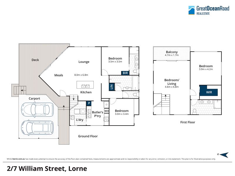 The upstairs master zone features a bedroom, walk in robe, large ensuite and second living (potential 4th bedroom) with deck. The entire area currently enjoys quality views of Louttit Bay, Lorne Point, the Pier and Aireys Inlet Lighthouse.