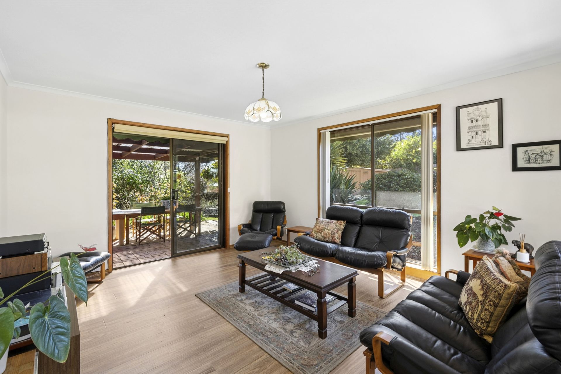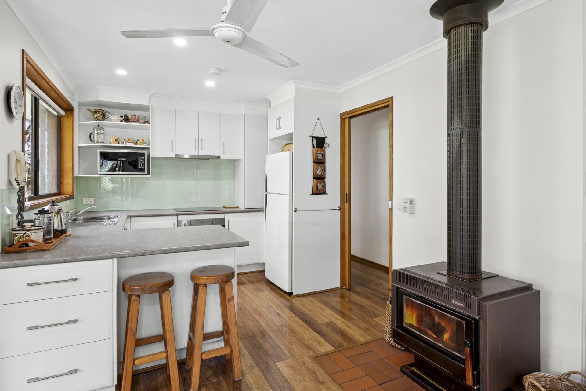 Step inside to find a warm and inviting open-plan kitchen and dining area, filled with natural light and warmed by a wood fire. The north-facing living room soaks in the sun and opens out to a covered pergola, offering a peaceful spot to unwind or entertain, while enjoying the privacy of your own garden sanctuary.