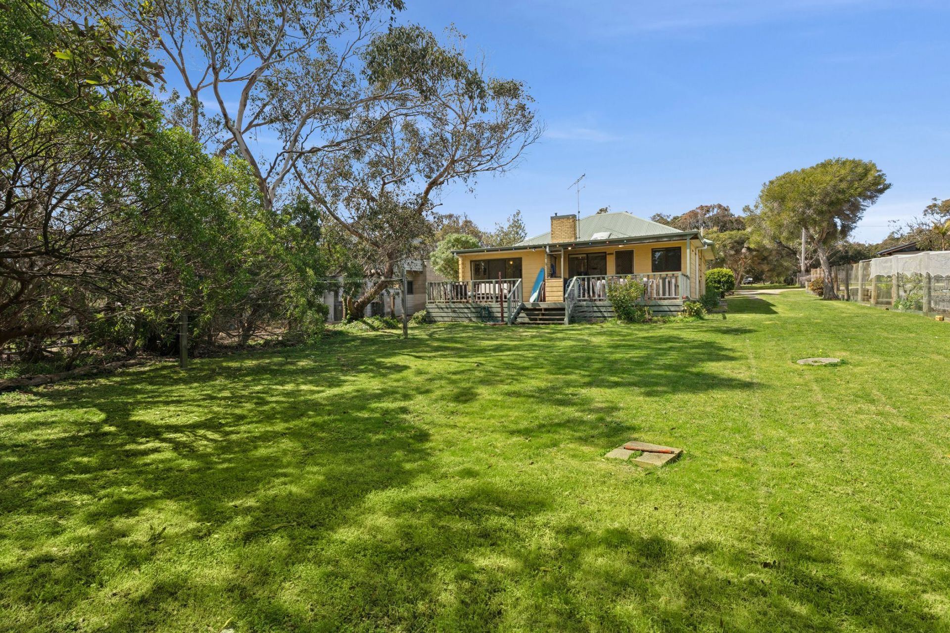 Set on an 878sqm flat, sun drenched block, the property also features original hardwood timber floorboards and ample outdoor space, ideal for future landscaping or simply soaking up the coastal sunshine.