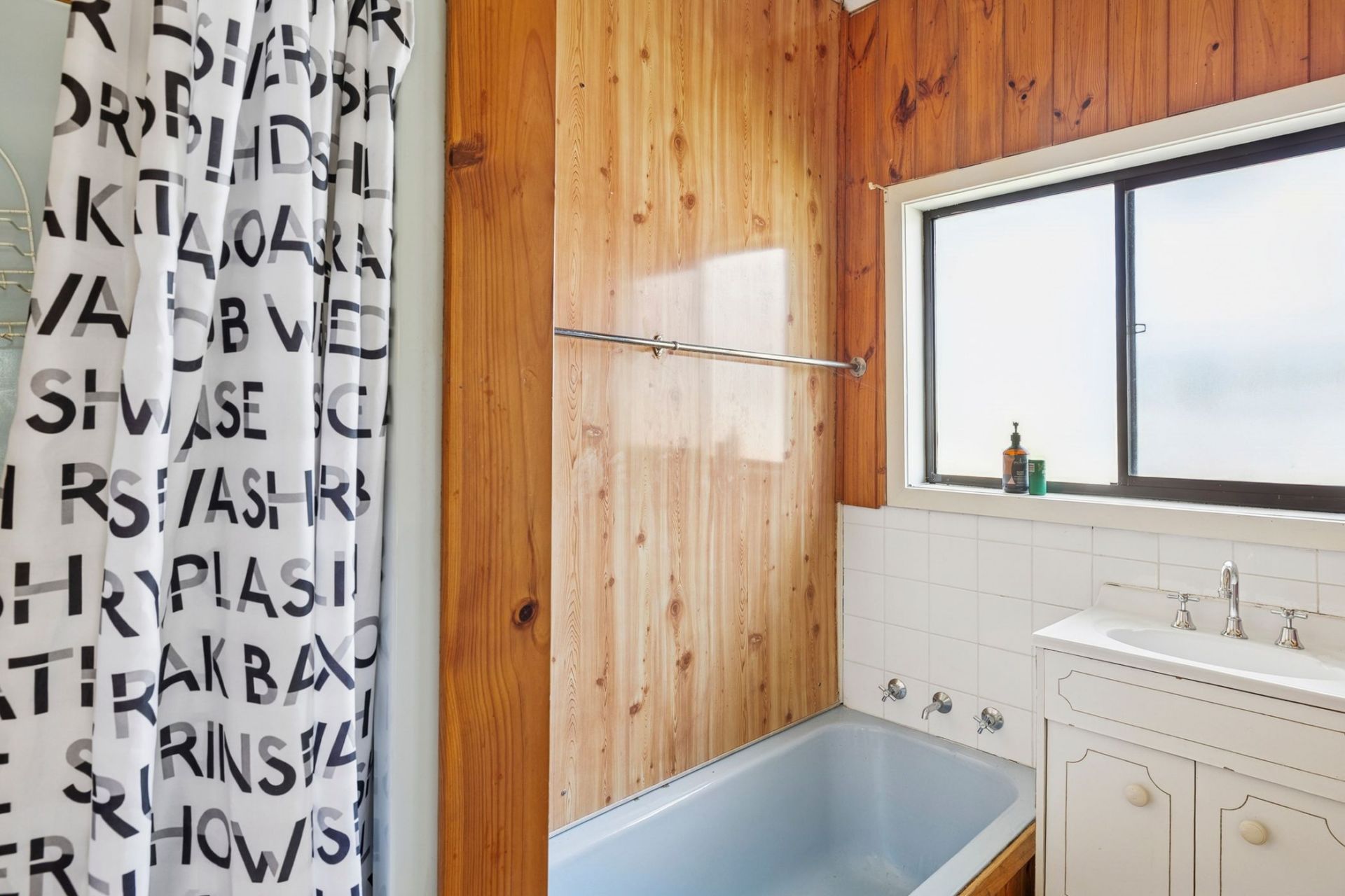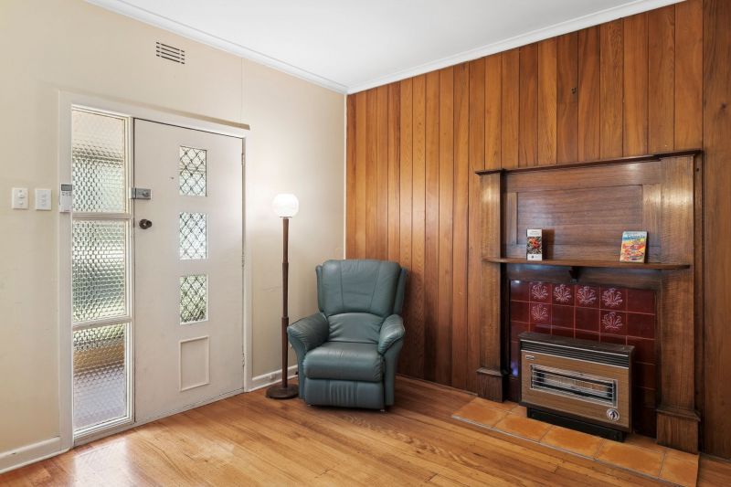 In largely original condition, the home carries all the charm of its era, complete with a baby blue bath and shower. A traditional separate lounge offers a cosy space, while the generous kitchen is designed around a central table, perfect for casual family meals. A skylight draws natural light into the space, creating a bright and welcoming hub.