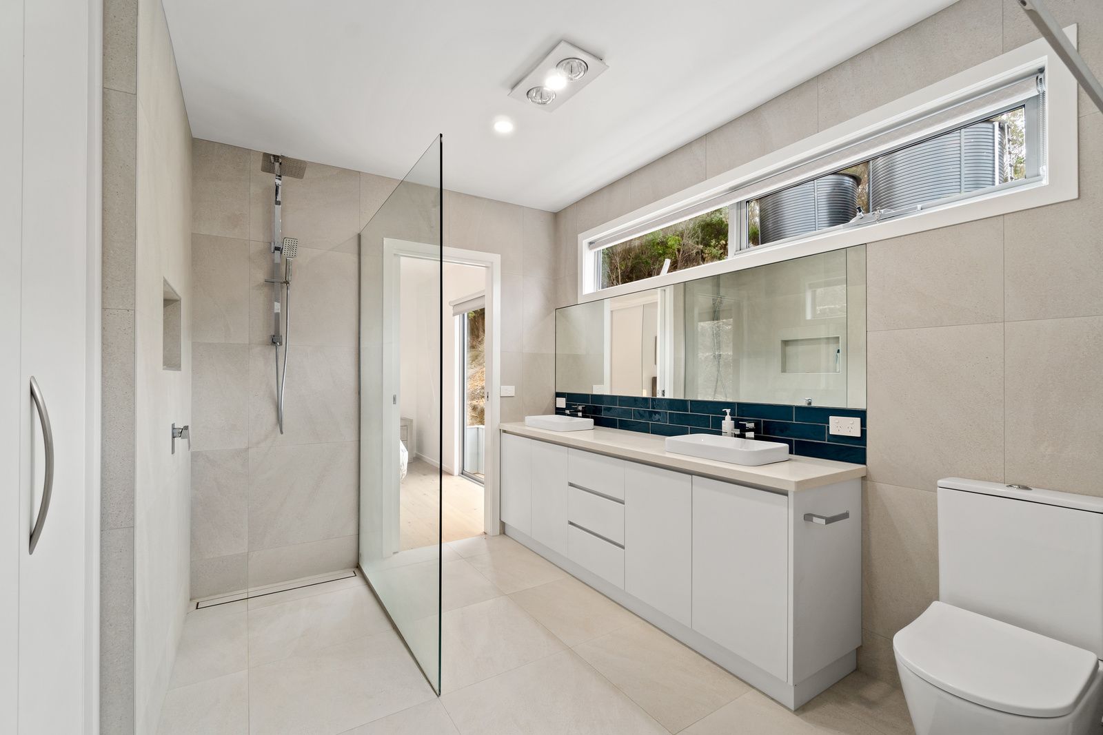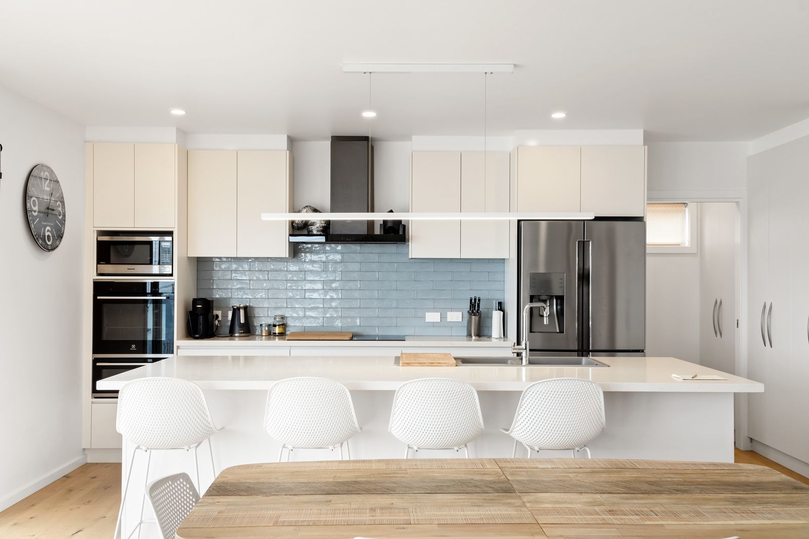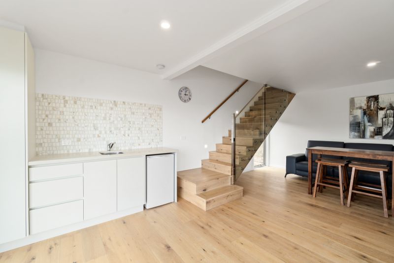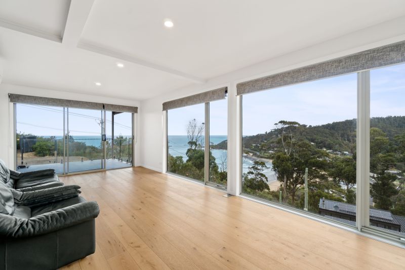 Panoramic views are enjoyed throughout this 18-month-old beach home. An unimpeded vista incorporating Wye point, main beach, crashing waves and bold blue horizon line as far as your eye can see.