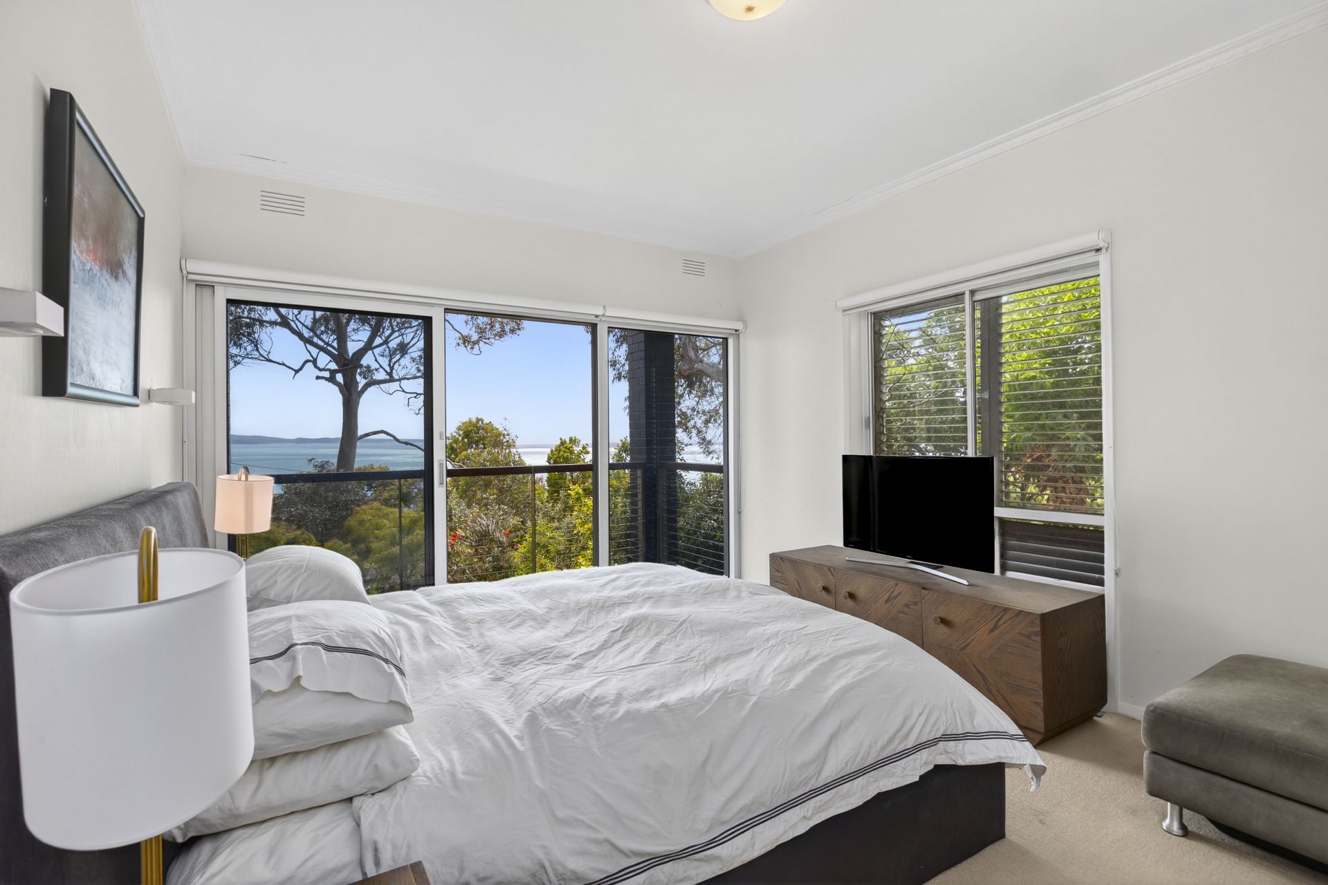 Two storey 5 bedroom residence at one of Lorne's most sought after addresses. The north facing weather protected home boasts an ocean outlook, the envy of Lorne, across Louttit Bay and the sweeping coastline to Aireys Inlet. The signature blue gums and natural native landscape enhance the unique residential enclave.