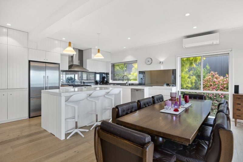 A stylish renovation by local builder Jason Bush featuring quality fittings and finishes, timber floors, stone bench tops, large functional kitchen, multiple fire boxes, nobo heaters in all bedrooms, split system heating/cooling and expanses of glass opening onto the huge sun-drenched coastal view entertaining deck provides all and more.