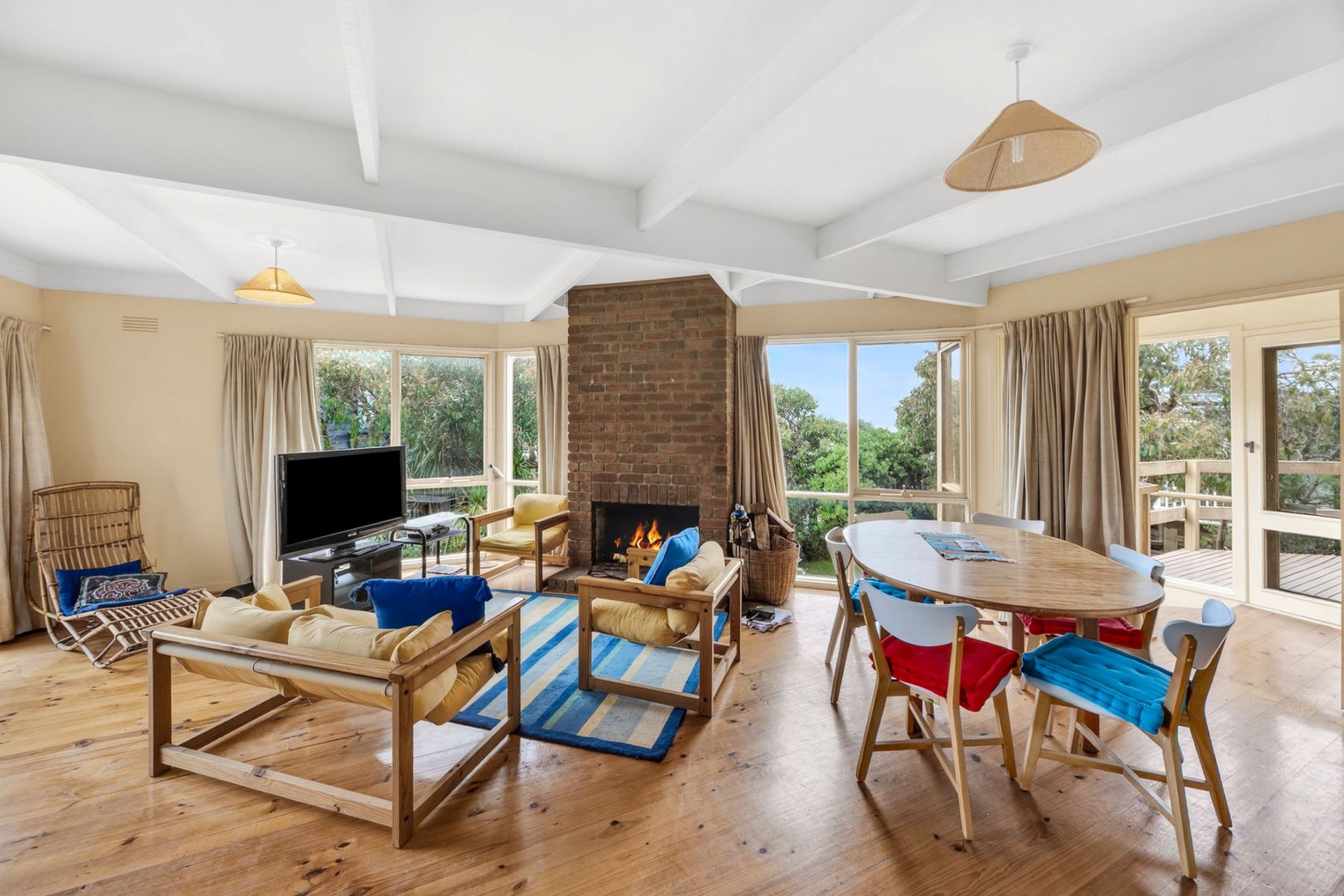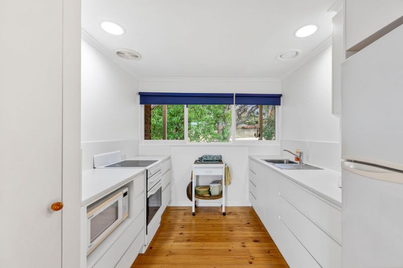 The light-filled open-plan kitchen, living and dining area is the heart of the home, complete with a cosy open fireplace and reverse-cycle heating and cooling for year-round comfort.
