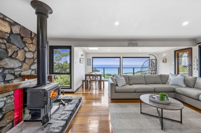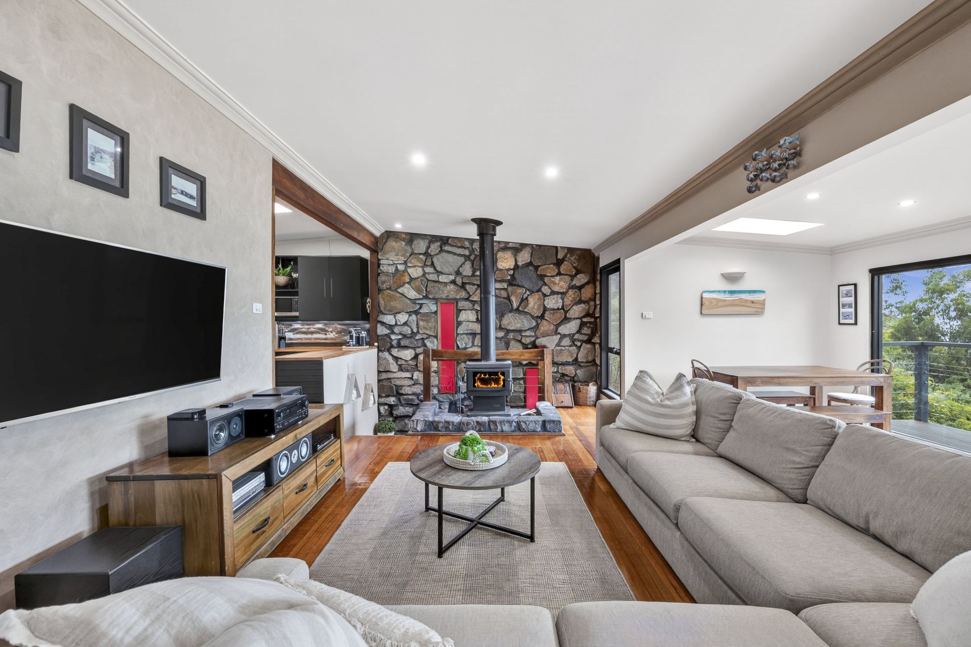 Features include iconic bluestone feature wall, woodfire heating, lovely hardwood flooring, well shaped sun deck, excellent external storage, well equipped kitchen, ample concrete car parking and stunning functional landscaping.